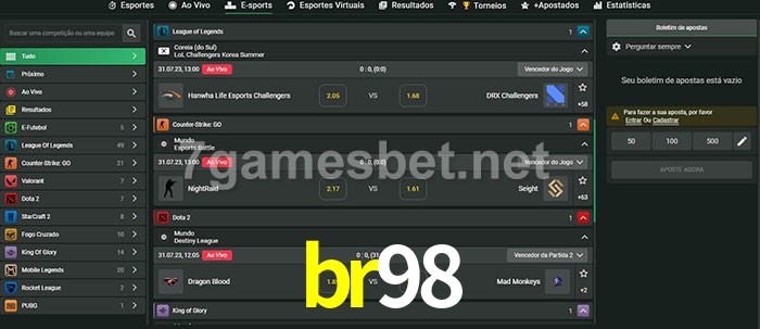 A aposta br98 oferece aos jogadores a experiência mais conveniente de apostas em eSports!